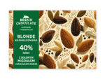 Naszą czekoladę Blonde – aksamitną, o złocistym kolorze i karmelowym smaku – wzbogaciliśmy o prażone migdały w delikatnej, solonej otoczce. Ten kontrast smaków – słodycz karmelu i subtelna słoność – tworzy niezwykle harmonijną, złożoną kompozycję.