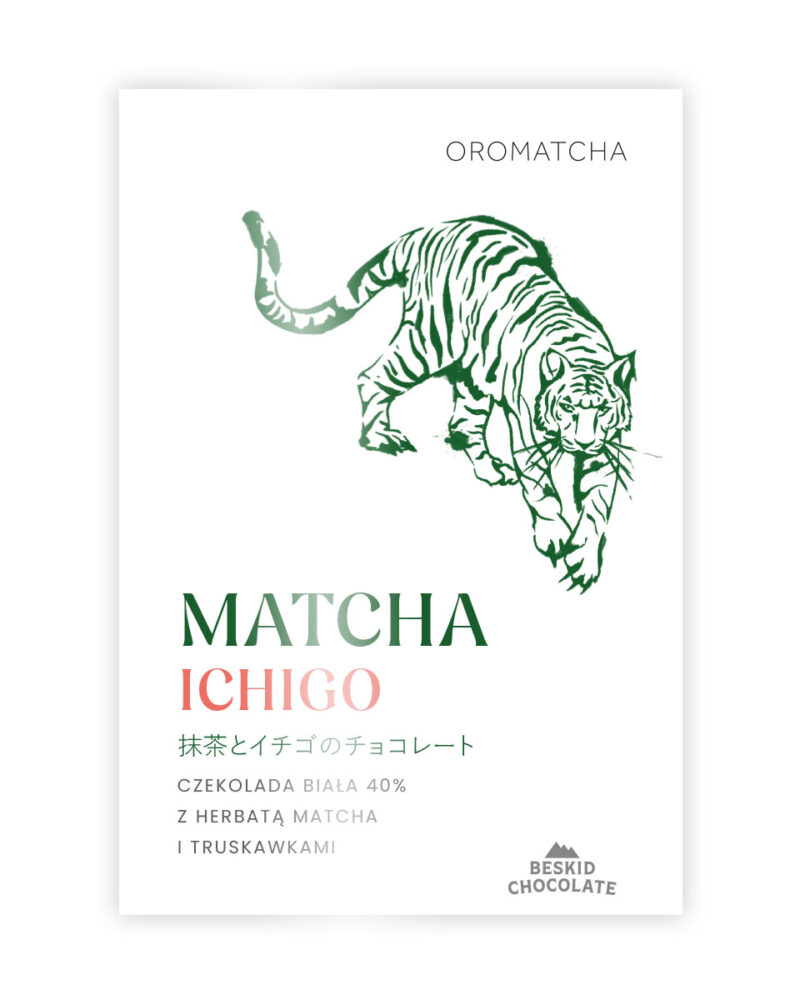 Biała czekolada z dodatkiem zielonej herbaty matcha i liofilizowanych truskawek to kolejny efekt współpracy Beskid Chocolate i Oromatcha. Głęboki, herbaciany charakter matchy przełamany został naturalną owocową kwasowością i lekkością truskawki.