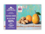 Czekolada rzemieślnicza produkowana od ziarna do tabliczki (bean to bar) z wysokiej jakości aromatycznych odmian ziaren kakaowca pochodzących z Filipin farma Kablon z kawałkami mango i imbiru.