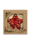 Gwiazda z czekolady mlecznej z dodatkiem truskawek liofilizowanych. Pakowane w estetyczne pudełko z kartonu kraft wypełnione „eko wiórkami”.