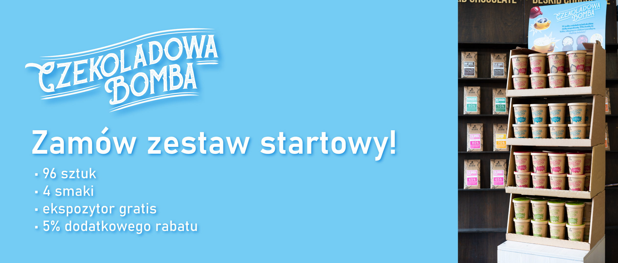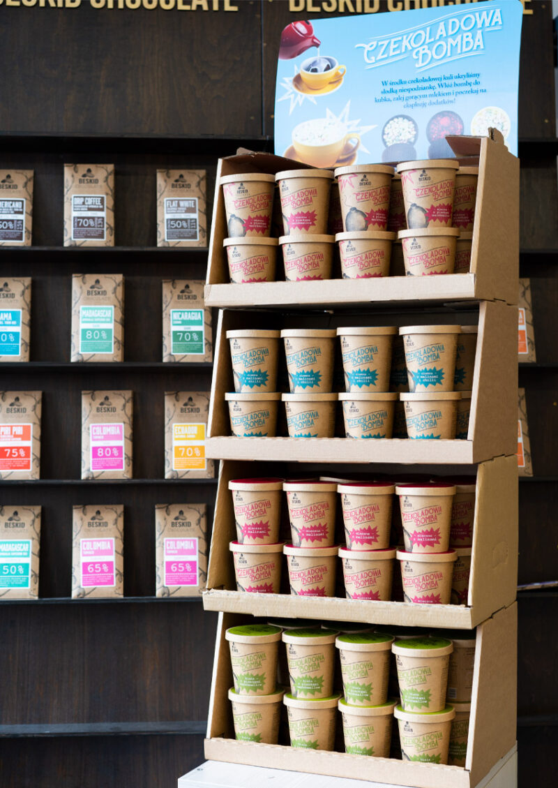 - kartonowy ekspozytor z grafiką Chocolate Bomb,