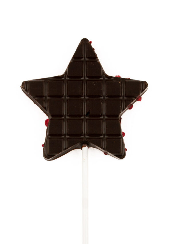 Lizak gwiazdka z czekolady ciemnej z malinami 30g